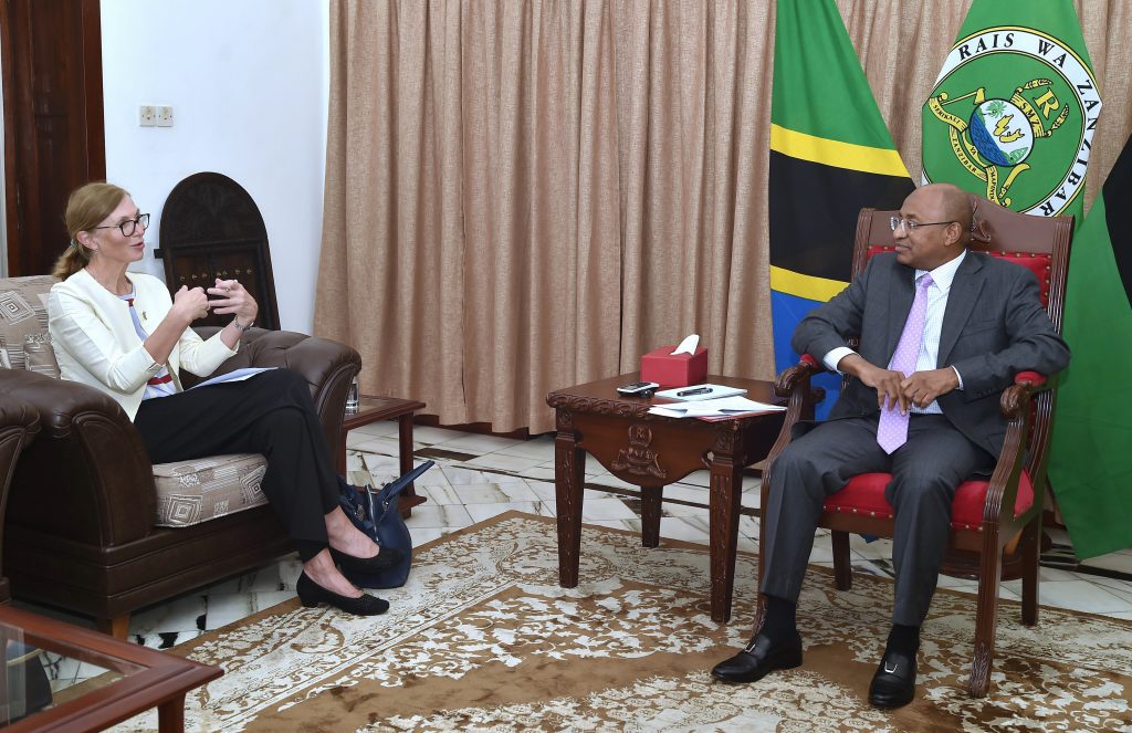 RAIS wa Zanzibar na Mwenyekiti wa Baraza la Mapinduzi Mhe.Dk.Hussein Ali Mwinyi akizungumza na mgeni wake Balozi wa Norway Nchini Tanzania Mhe.Toni Tinnes, mazungumzo hayo yaliyofanyika katika ukumbi wa Ikulu Jijini Zanzibar