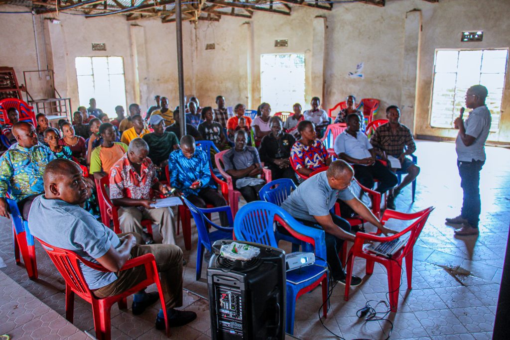 Wanavikundi na Wajasiriamali wadogo wadogo wakifuatilia filamu ya Elimu ya Fedha iliyokuwa ikioneshwa katika Ukumbi wa Kijiji cha Muze Wilaya ya Sumbawanga Vijijini.