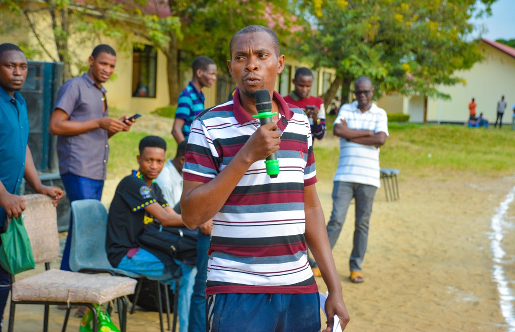 Kaimu Mwalimu wa Michezo Chuo Kikuu Mzumbe Ndaki ya Dar es Salaam Bw. Joseph Ally Sule akizungumza jambo na wanafunzi wa Chuo hicho kabla ya kuanza fainali za mashindano madarasa 2024.
