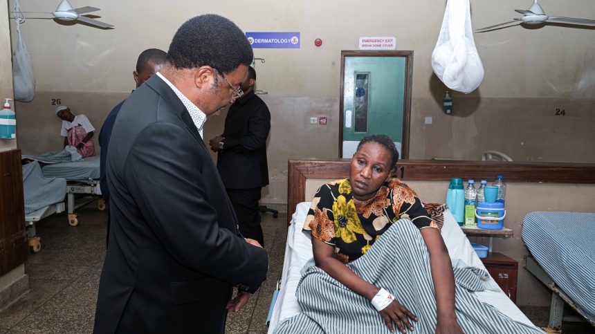 Waziri Mkuu, Kassim Majaliwa akimjulia hali Felista Swebe, ambaye amelazwa katika Hospitali ya Taifa ya Muhimbili jijini Dar es salaam kwa matibabu, wakati alipokwenda katika hospitali hiyo kuwajulia wagonjwa, Julai 10.2024. (Picha na Ofisi ya Waziri Mkuu)