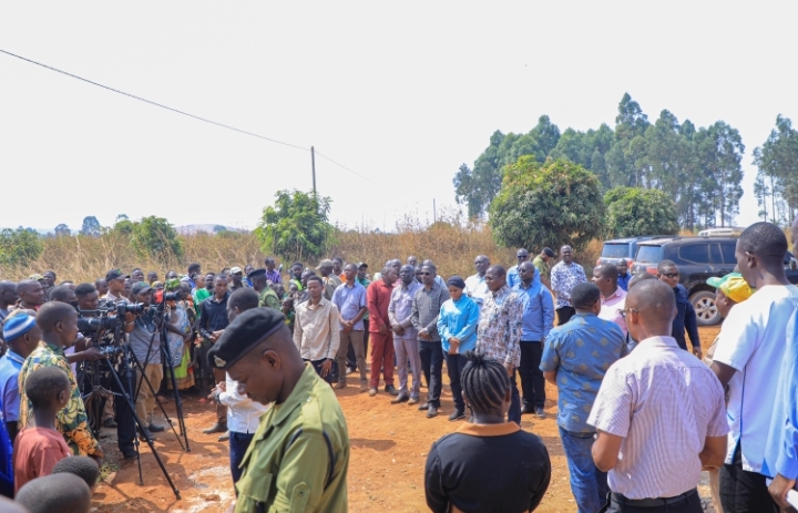 Makamu wa Rais wa Jamhuri ya Muungano wa Tanzania Mhe. Dkt. Philip Mpango akizungumza na Mwenyekiti wa Kijiji cha Kasumo Bw. Japhet Kahenga (Mwenye shati jekundu) wakati alipotembelea Zahanati ya Kijiji hicho iliyopo Wilaya ya Buhigwe mkoani Kigoma.