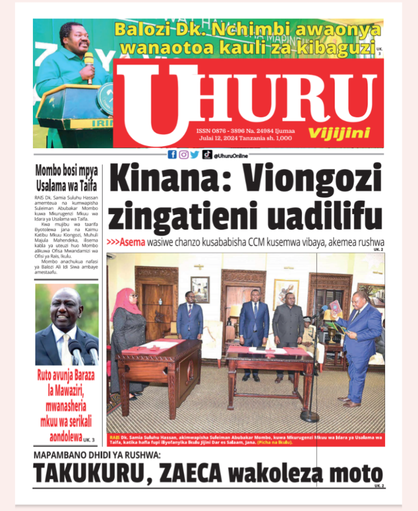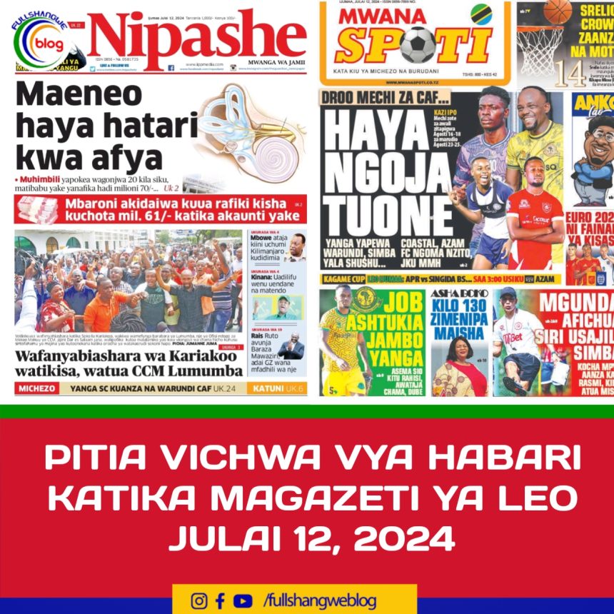 MagazetiPITIA VICHWA VYA HABARI KATIKA MAGAZETI YA LEO JULAI 12, 2024 Last updated: 2024/07/12 at 4:09 AM John Bukuku 1 year ago Share SHARE John Bukuku July 12, 2024 July 11, 2024 Share this Article Facebook Twitter Email Print Previous Article PURA YAWATAKA WADAU KUTANGAZA KIMATAIFA MAENEO YA UWEKEZAJI WA GESI NA MAFUTA NCHINI Next Article WAZABUNI WASIORIDHISHWA NA MCHAKATO WA MANUNUZI WATAKIWA KUWASILISHA MALALAMIKO YAO PPAA