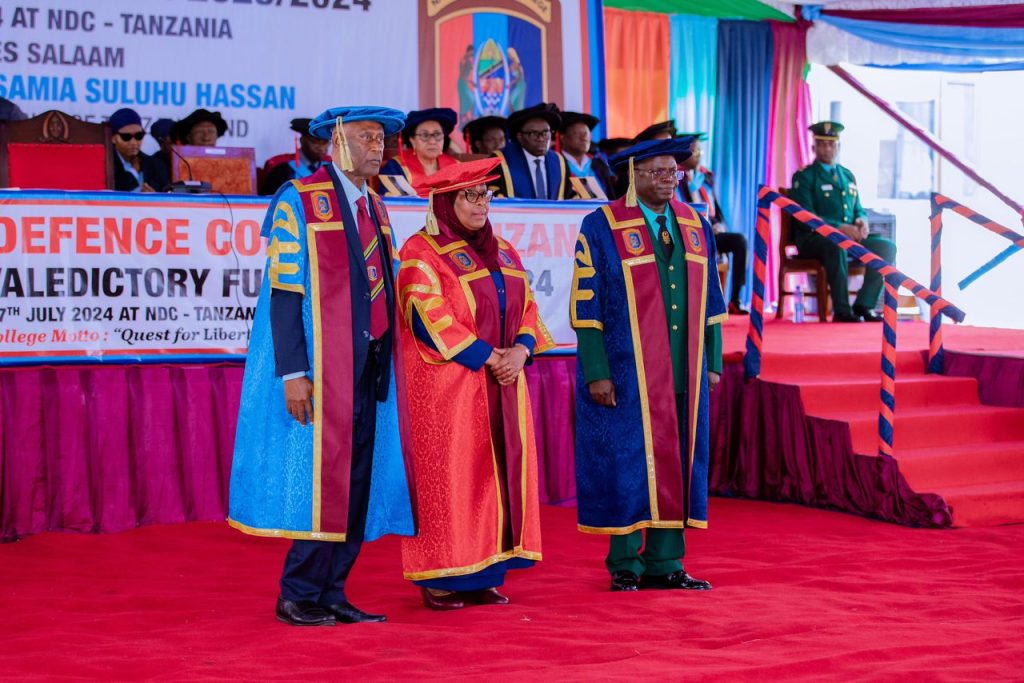 Rais wa Jamhuri ya Muungano wa Tanzania Mhe. Dkt. Samia Suluhu Hassan Akiwa kwenye Mahafali ya Chuo cha Taifa cha Ulinzi (NDC) Kozi ya 12 kwa Mwaka 2023/2024, Kunduchi Jijini Dar es Salaam, leo tarehehe 27 Julia,2024.