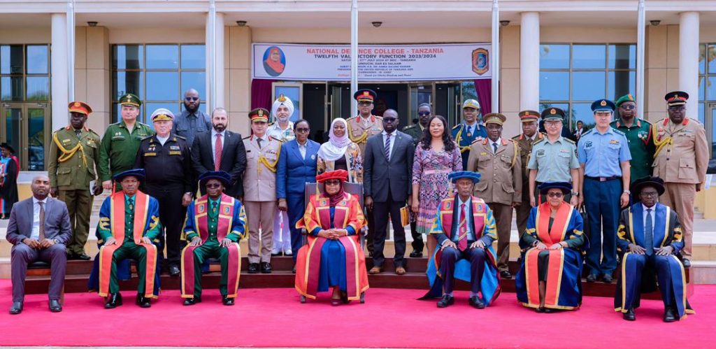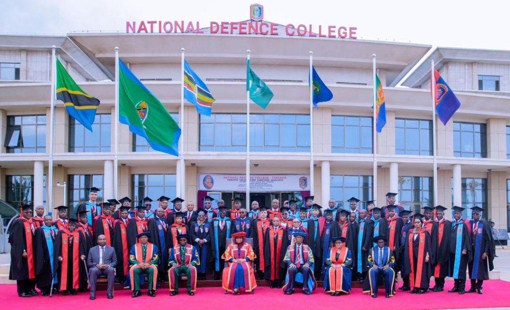 Wahitimu wa Chuo cha Taifa cha Ulinzi (NDC) Kozi ya 12 kwa mwaka 2023/2024 wakiwa kwenye Mahafali ya Chuo hicho Kunduchi Jijini Dar es Salaam tarehe 27 Julai, 2024.