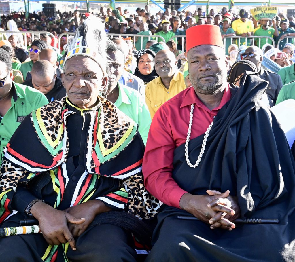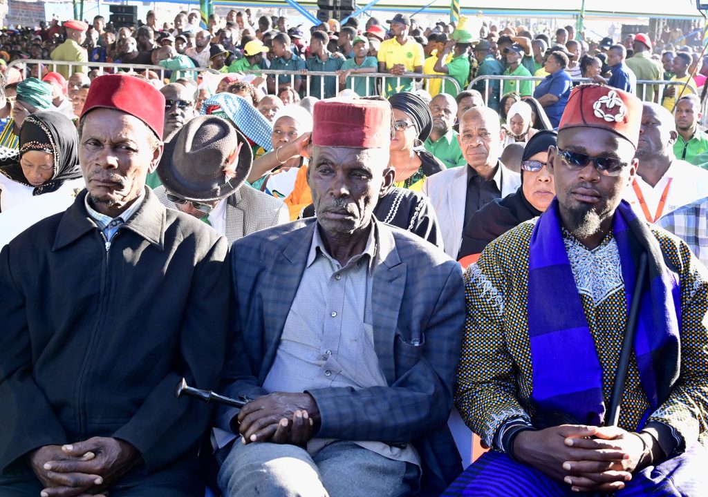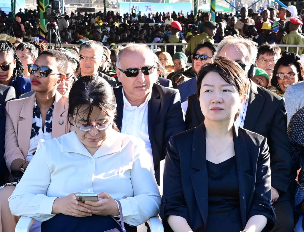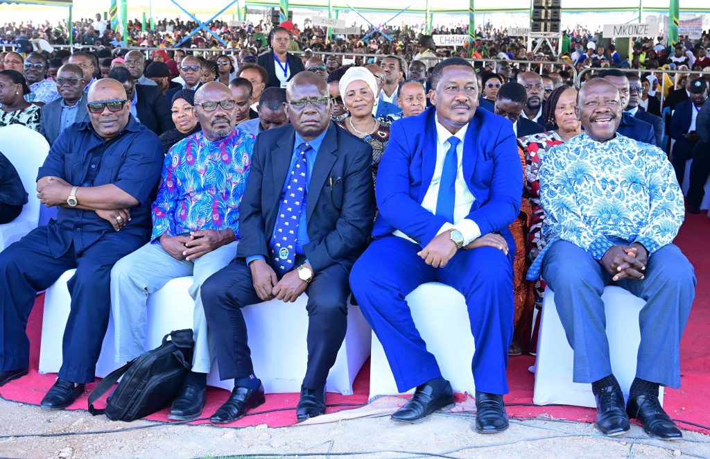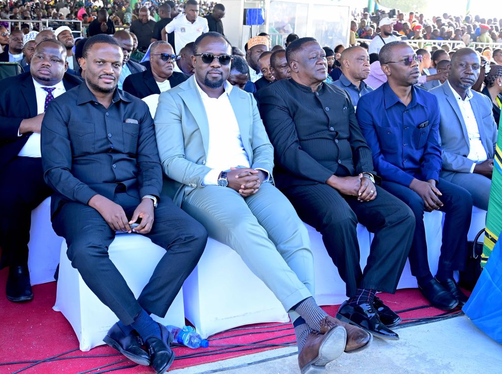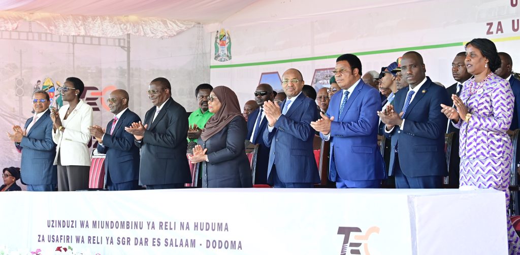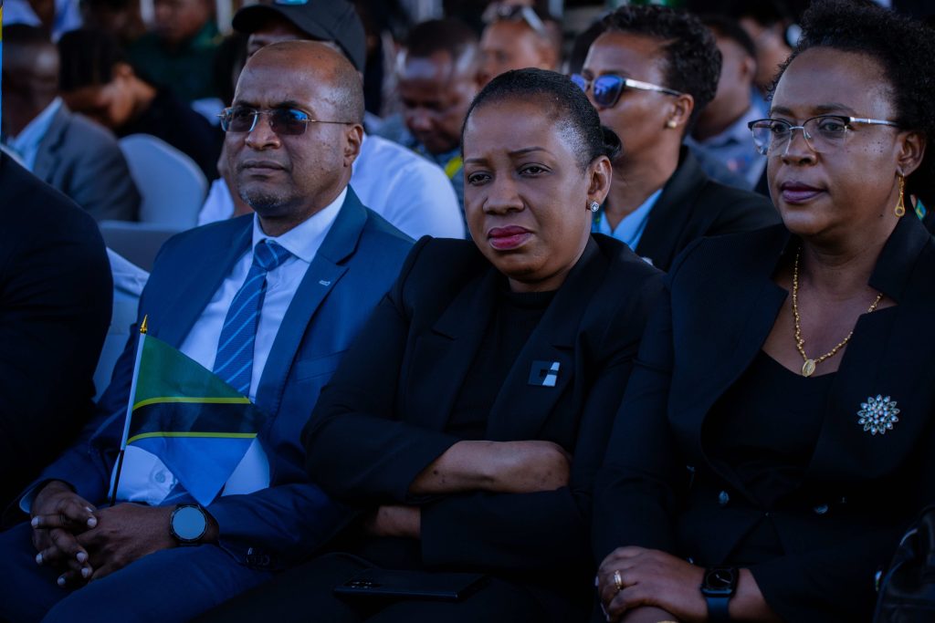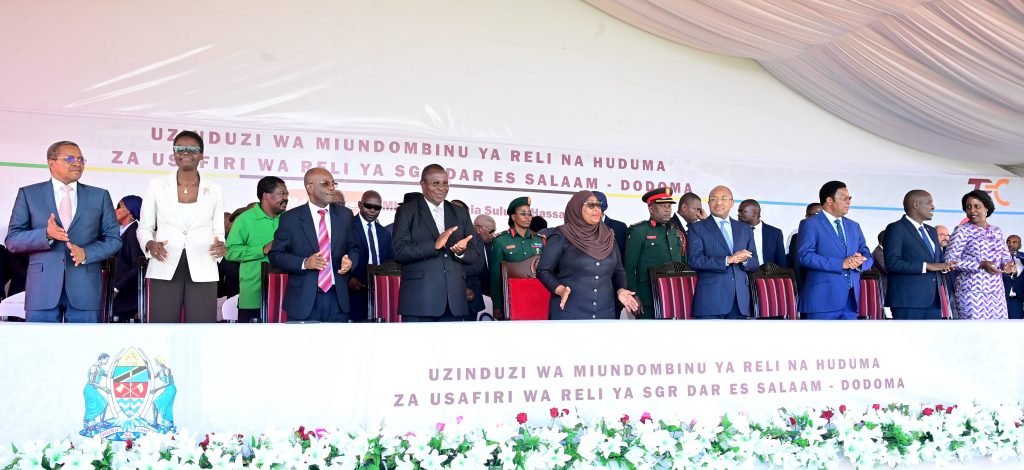 Baadhi ya Viongozi pamoja na Wageni mbalimbali waliohudhuria hafla ya uzinduzi wa Miundombinu ya Reli na Huduma za Usafiri wa Reli ya Kisasa (SGR) kutoka Dar es Salaam hadi Dodoma kwenye hafla iliyofanyika katika Stesheni Kuu ya SGR Mkoani Dodoma tarehe 01 Agosti, 2024.
