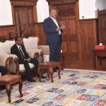 Rais wa Jamhuri ya Muungano wa Tanzania Mhe. Dkt. Samia Suluhu Hassan,akimkabidhi Tuzo Mkuu wa Jeshi la Kujenga Taifa (JKT), Meja Jenerali Rajab Mabele mara baada ya kuibuka Mshindi wa kwanza wa Jumla katika Maonesho ya Nanenane Kitaifa yaliyofanyika viwanja vya Nzunguni Dodoma.