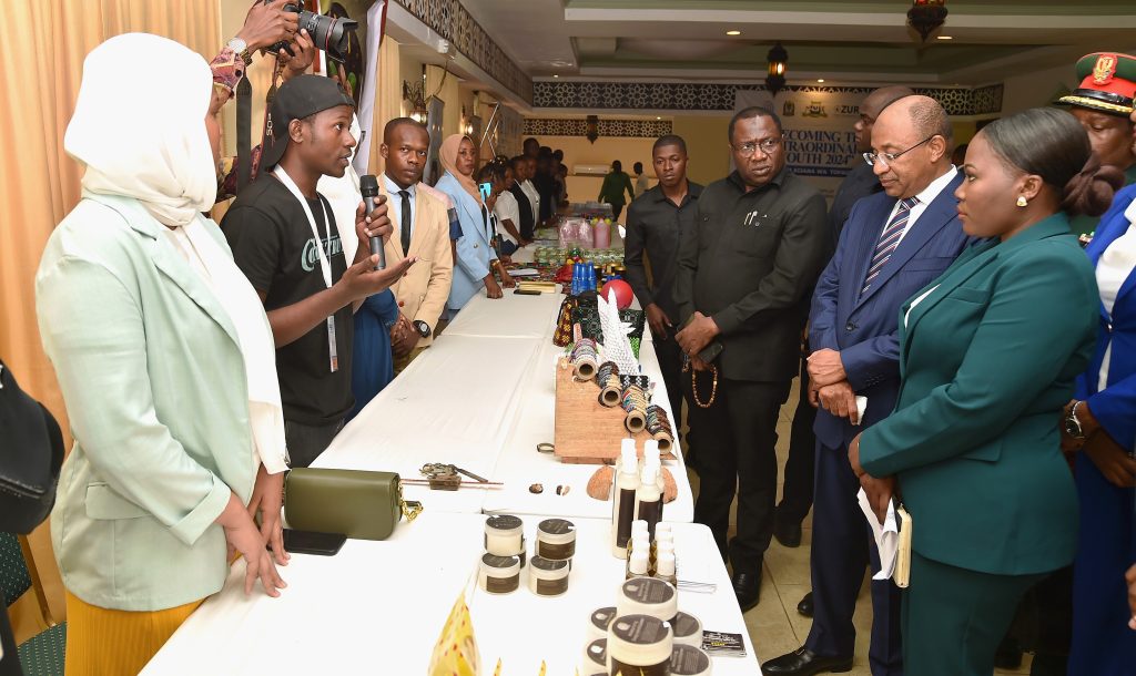 RAIS wa Zanzibar na Mwenyekiti wa Baraza la Mapinduzi Mhe.Dk.Hussein Ali Mwinyi atembelea maonesho ya Ubunifu wa Vijana, wakati wa hafla ya ufunguzi wa Kongamano la Kitaifa la Kuwawezesha Vijana, lililofanyika katika ukumbi wa Hoteli ya Zanzibar Beach Resort Mazizini Wilaya ya Magharibi “B” Unguja leo 10-8-2024, lililoandaliwa na Taasisi ya Global Youth Empowerment Institute.(Picha na Ikulu)