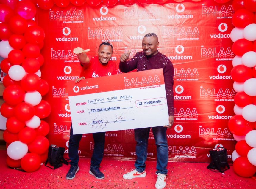 Mkuu wa Kanda ya Kaskazini wa Vodacom, George Venant, amekabidhi zawadi kwa mshindi mkuu Bankason Yusuph, kiasi cha tsh milioni 20,000,000 Mkoani arusha, akiwa ni mshindi wa zawadi kuu wa kwanza kupatikana kwenye kampeni hiyo mpya ya ni Balaa kila mtu ni Mshindi, wakifuatiwa na shindi wengine ambayo imeanza rasmi Agosti nne mwaka huu.