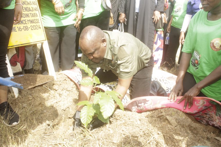 akishiriki zoezi la upandaji wa miti katika eneo la Amboni Jijini Tanga lililoratibiwa