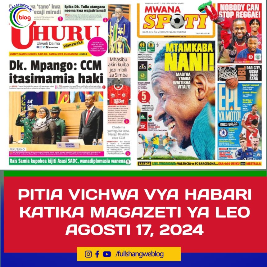 MagazetiPITIA VICHWA VYA HABARI KATIKA MAGAZETI YA LEO AGOSTI 17, 2024 Last updated: 2024/08/17 at 3:23 AM John Bukuku 1 year ago Share SHARE John Bukuku August 17, 2024 August 17, 2024 Share this Article Facebook Twitter Email Print Previous Article RAIS HICHILEMA WA ZAMBIA AMPONGEZA RAIS DKT. SAMIA KWA UONGOZI BORA WA KIDEMOKRASIA Next Article TIC YATOA SEMINA KWA WAFANYABIASHARA RUVUMA