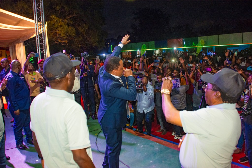 Naibu Waziri wa Utamaduni, Sanaa na Michezo, Mhe Hamis Mwinjuma (Mwana FA) akitoa burudani baada ya kuzindua Mashindano ya Utamaduni ya Mkuu wa Majeshi yaliofanyika Agosti 19, 2024, Msasani Beach, Dar es Salaam.