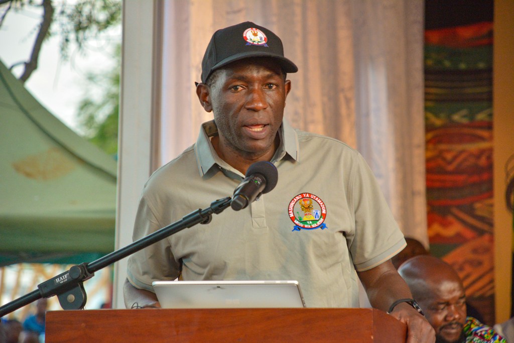 Mwenyekiti wa Kamati ya Maandalizi ya Mashindano ya Utamaduni ya Mkuu wa Majeshi, Meja Jenerali Mbaraka Mkeremy, akizungumza jambo katika hafla ya Uzinduzi Mashindano hayo yaliofanyika Agosti 19, 2024, Msasani Beach, Dar es Salaam.