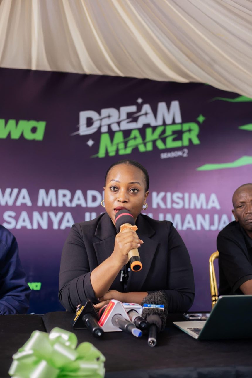 Meneja Masoko wa betPawa Kanda ya Afrika Mashariki, Bi. Borah Ndanyungu akizungumza wakati wa kukabidhi mradi wa maji kwa wakazi wa kijiji cha Makiwaru cha wilaya ya Siha, Sanya Juu, mkoani Kilimanjaro. Mradi huo umekamilika kupitia mpango wa betPawa Dream Maker ambao ulitokana na maombi yaliyowasilishwa na mkazi wa kijiji hicho Bw Eric Salema.