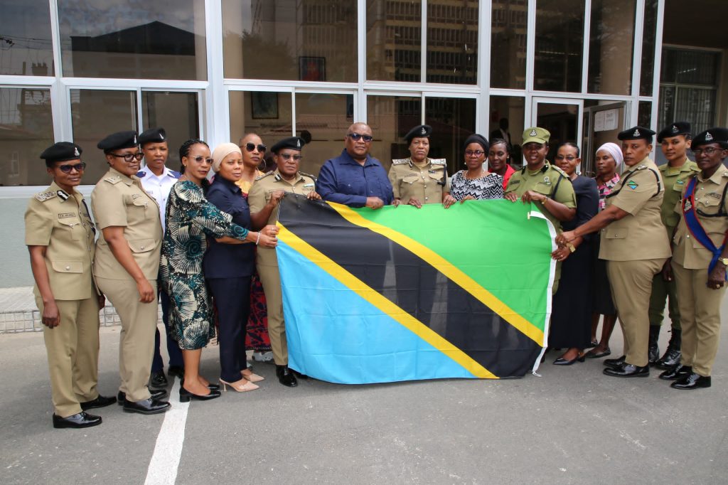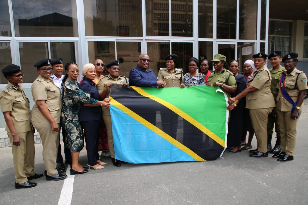 Naibu kamishna wa Polisi Kutoka kitengo cha udhibiti Makosa yanayovuka Mipaka DCP Daniel Nyambabe amewakabidhi askari wa kike Bendera ya Taifa kwa ajili ya Kwenda nchini Marekani kushiriki mafunzo kwa askari wa kike Duniani katika jimbo la Chicago Nchini humo kuanzia Septemba 01 hadi 05, Mwaka huu.