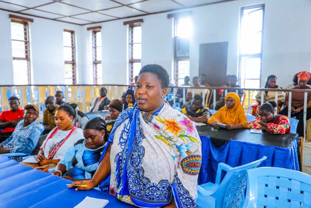 Mjasiriamali na mtangazi wa Radio Ulanga FM, Easter Kaonja akichangia mojawapo ya mada iliyotolewa kwenye program maalum ya elimu ya fedha kwa umma iliyotolewa kwa wananchi wa Halmashauri ya Wilaya ya Ulanga.