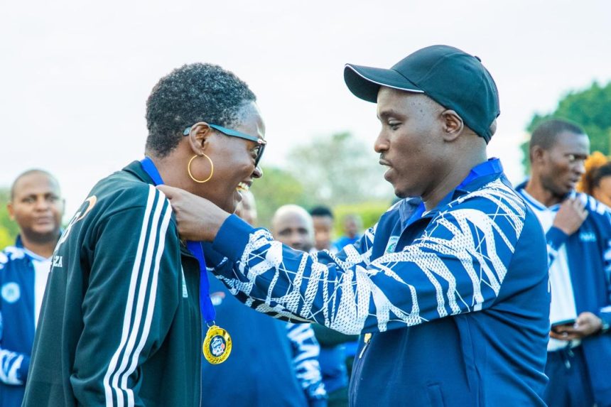 Awali Dkt. Biteko ameshiriki bonanza la Bunge katika matembezi kutoka Chuo cha Mipango hadi Viwanja vya Shule ya Sekondari John Merlini na baada kutoa zawadi kwa washindi wa michezo mbalimbali.