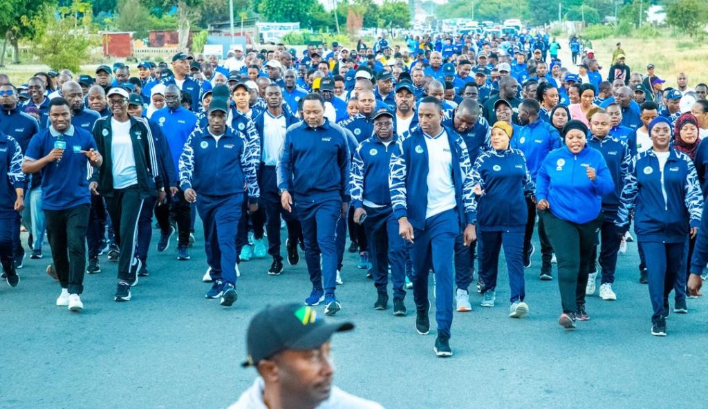 Awali Dkt. Biteko ameshiriki bonanza la Bunge katika matembezi kutoka Chuo cha Mipango hadi Viwanja vya Shule ya Sekondari John Merlini na baada kutoa zawadi kwa washindi wa michezo mbalimbali.
