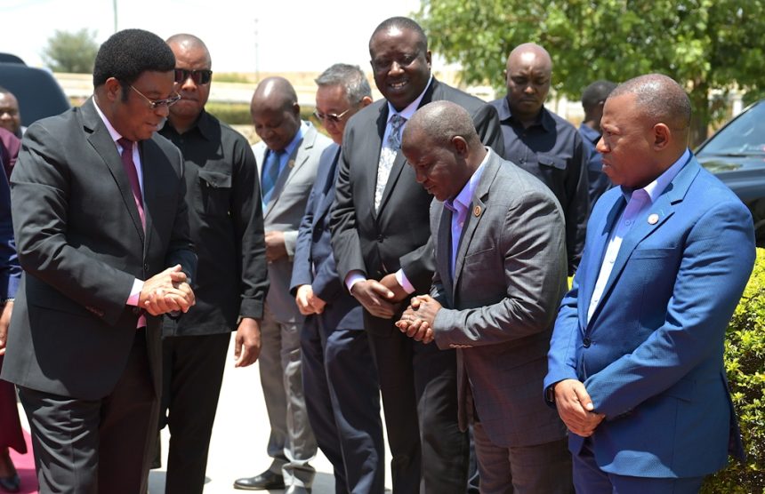 Waziri Mkuu, Kassim Majaliwa akisalimiana na viongozi alipowasili kwenye viwanja vya Kituo cha Mikutano cha Jakaya Kikwete jijini Dodoma kufunga Mkutano Maalumu wa Viongozi, Watalaamu na wadau wa Mazingira kuhusu Mwelekeo wa Mazingira Nchini, Septemba 10, 2024. (Picha na Ofisi ya Waziri Mkuu)