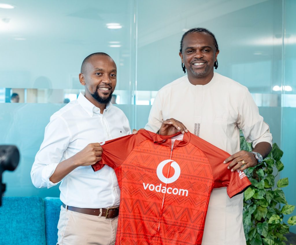 Mkurugenzi Mtendaji wa Vodacom Tanzania Plc, Philip Besiimire (kushoto) akimkabidhi jezi ya Vodacom gwiji wa Soka Barani Afrika kutoka Nigeria, Nwankwo Kanu mbele ya wanahabari ambapo mwanasoka huyo mstaafu amekuja nchini kuunga mkono ziara ya mbio za Baiskeli za Twende Butiama 2024. Kanu, kupitia taasisi yake ya Kanu Heart Foundation, ameungana na Vodacom Tanzania Foundation kuchangia utoaji wa huduma za afya nchini kupitia ziara ya Twende Butiama 2024 katika tukio lililofanyika Makao Makuu ya kampuni hiyo jijini Dar es Salaam mnamo tarehe 13 Septemba, 2024.