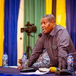 Mkurugenzi Mtendaji wa Vodacom Tanzania Plc, Philip Besiimire (kushoto) akimkabidhi jezi ya Vodacom gwiji wa Soka Barani Afrika kutoka Nigeria, Nwankwo Kanu mbele ya wanahabari ambapo mwanasoka huyo mstaafu amekuja nchini kuunga mkono ziara ya mbio za Baiskeli za Twende Butiama 2024. Kanu, kupitia taasisi yake ya Kanu Heart Foundation, ameungana na Vodacom Tanzania Foundation kuchangia utoaji wa huduma za afya nchini kupitia ziara ya Twende Butiama 2024 katika tukio lililofanyika Makao Makuu ya kampuni hiyo jijini Dar es Salaam mnamo tarehe 13 Septemba, 2024.