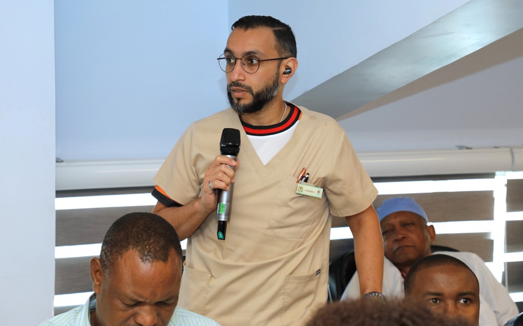 Daktari bingwa wa magonjwa ya moyo wa Taasisi ya Moyo Jakaya Kikwete (JKCI) Khuzeima Khanbhai akielezea kuhusu maendeleo ya maandalizi kikao cha CardioTan kinachoandaliwa na Taasisi hiyo wakati wa kikao cha wafanyakazi kilichofanyika leo katika ukumbi wa Taasisi hiyo iliyopo jijini Dar es Salaam.