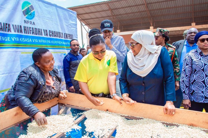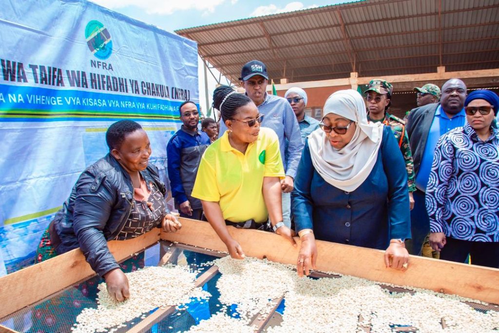 Aidha, Mhe. Rais Dkt. Samia pia amepokea taarifa kutoka kwa Dkt. Andrew Komba, Mkurugenzi Mkuu wa Wakala wa Taifa wa Hifadhi ya Chakula (NFRA) kuhusu shughuli za uendeshaji wa ununuzi katika Kituo hicho na kukagua mizani ya kidigitali.