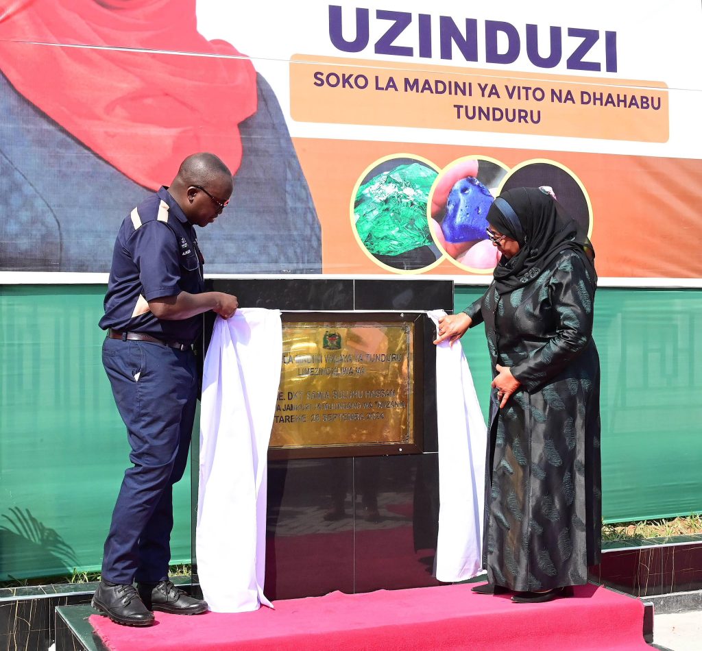 Rais wa Jamhuri ya Muungano wa Tanzania Mhe. Dkt. Samia Suluhu Hassan afungua Soko la Madini katika Wilaya ya Tunduru mkoani Ruvuma tarehe 26 Septemba, 2024.