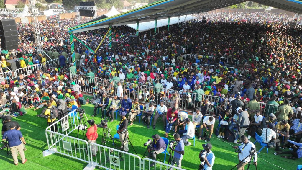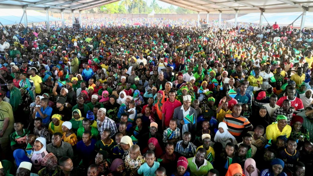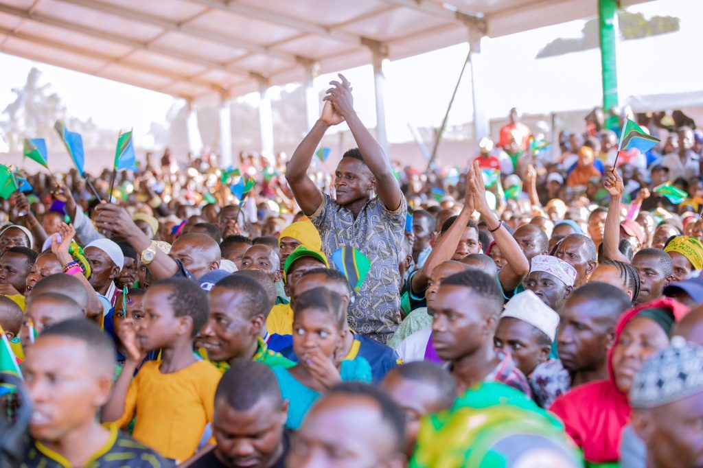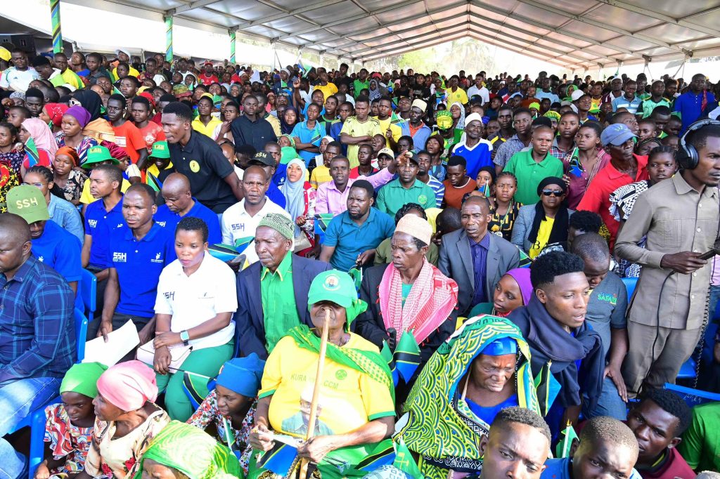 Wananchi wa Tunduru wakiwa kwenye mkutano wa hadhara wa Rais wa Jamhuri ya Muungano wa Tanzania Mhe. Dkt. Samia Suluhu Hassan uliofanyika katika Uwanja wa CCM Tunduma Mkoani Ruvuma tarehe 26 Septemba, 2024.