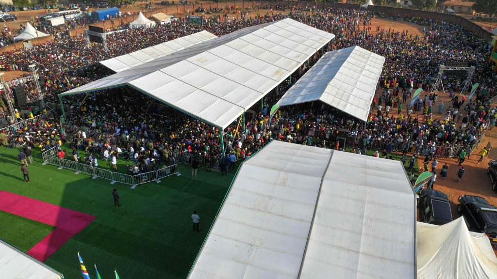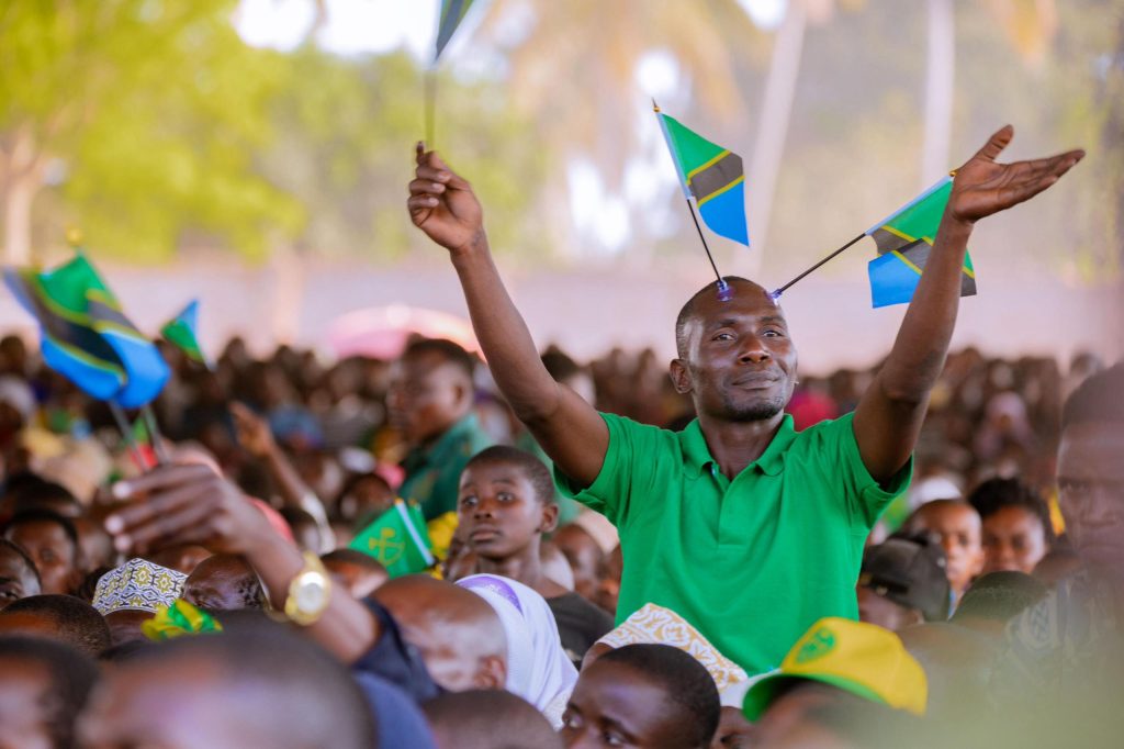 Rais wa Jamhuri ya Muungano wa Tanzania Mhe. Dkt. Samia Suluhu Hassan akiwa katika mkutano wa hadhara uwanja wa CCM wilaya ya Tunduru mkoani Ruvuma tarehe 26 Septemba 2024.