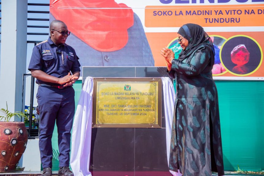 Rais wa Jamhuri ya Muungano wa Tanzania Mhe. Dkt. Samia Suluhu Hassan amezindua Soko la Madini ya Vito na Dhahabu Wilayani Tunduru ikiwa ni moja ya shughuli alizofanya akiwa katika ziara ya kikazi ya siku 6 Mkoani Ruvuma.