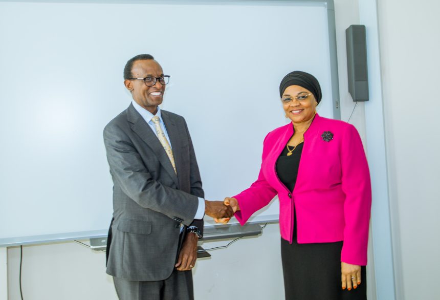 Katibu Mkuu wa Wizara ya Fedha, Dkt. Natu El-maamry Mwamba (kulia) akiagana na Naibu Mkuu Divisheni, Divisheni ya Fedha za Serikali, Idara ya Takwimu, Shirika la Fedha la Kimataifa (IMF) Bw. Andrew Kitili, baada ya kikao cha kufunga zoezi la kutathmini ubora wa Takwimu za Madeni ya Sekta ya Umma (PSDS), kilichofanyika Jijini Dodoma.