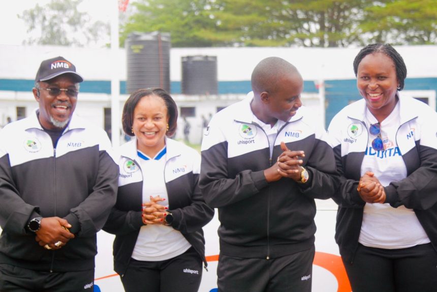 Uwakilishi wa benki ya NMB ambayo imekabidhi msaada wa vifaa vya michezo vyenye thamani ya sh. mil. 24.5 umeongozwa na Meneja wetu Mwandamizi wa Mahusiano ya Benki na Serikali, Josephine Kulwa, Meneja Mwandamizi Huduma za Kibenki kwa Serikali, Amanda Feruzi, pamoja na wafanyakazi wengine.