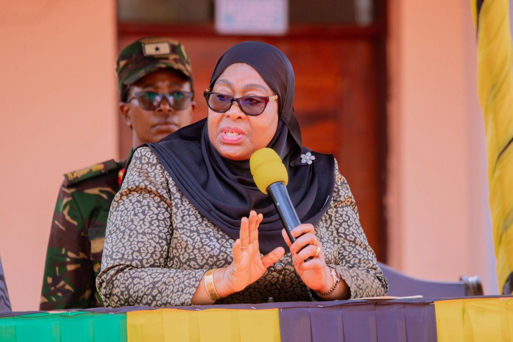 Rais wa Jamhuri ya Muungano wa Tanzania Mhe. Dkt. Samia Suluhu Hassan akizungumza na wanafunzi, wazazi na wananchi mara baada ya kuzindua Shule ya Sekondari ya Wasichana ya Mchepuo wa Sayansi na Sanaa ya Dkta. Samia Suluhu Hassan iliyopo katika kitongoji cha Migeregere kata ya Rwinga, Wilaya ya Namtumbo, Mkoani Ruvuma tarehe 27 Septemba, 2024.