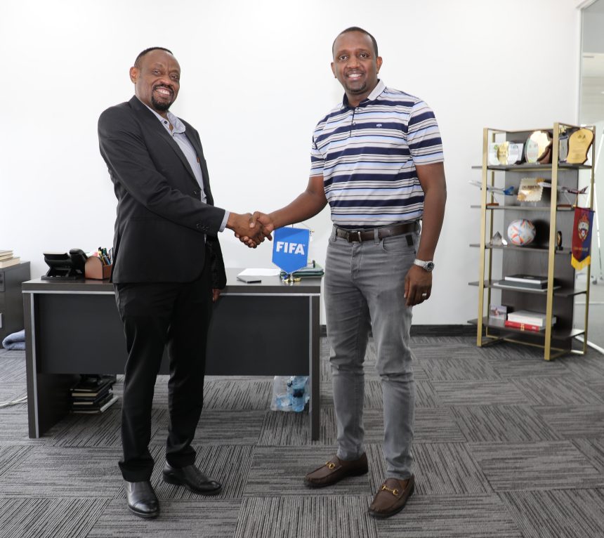 Mkurugenzi Mtendaji wa Taasisi ya Moyo Jakaya Kikwete (JKCI) Dkt. Peter Kisenge akiwa katika picha ya pamoja na Rais wa klabu ya Yanga Eng. Hersi Said mara baada ya kumaliza mazungumzo yao ya kuona ni namna gani klabu hiyo itashirikiana na JKCI katika kuchangia matibabu ya moyo kwa watoto wasio na uwezo, kutoa uelewa kwa jamii kuhusu magonjwa ya moyo na kutangaza huduma za matibabu ya moyo zinazotolewa na Taasisi hiyo