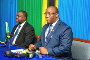Mkuu wa Mkoa wa Mwanza ,Said Mtanda (katikati),leo akizungumza na waandishi wa habari,kuhusiana na mapokezi ya Mwenge wa Uhuru mkoani humu.