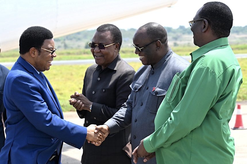 Waziri Mkuu, Kassim Majaliwa akisalimiana na Mkuu wa Mkoa wa Mwanza, Said Mtanda alipowasili kwenye Uwanja wa Ndege wa Mwanza kufunga Mkutano Mkuu wa Kumi wa Wadau wa Lishe kwenye ukumbi wa Malaika Beach Resort jijini Mwanza, Oktoba 3, 2024. Wa pili kushoto ni Waziri wa Nchi, Ofisi ya Waziri Mkuu Sera, Bunge na Uratibu, William Lukuvi na kulia ni Mwenyekiti wa CCM Mkoa wa Mwanza, Michael Lushinge Masanja. (Picha na Ofisi ya Waziri Mkuu)