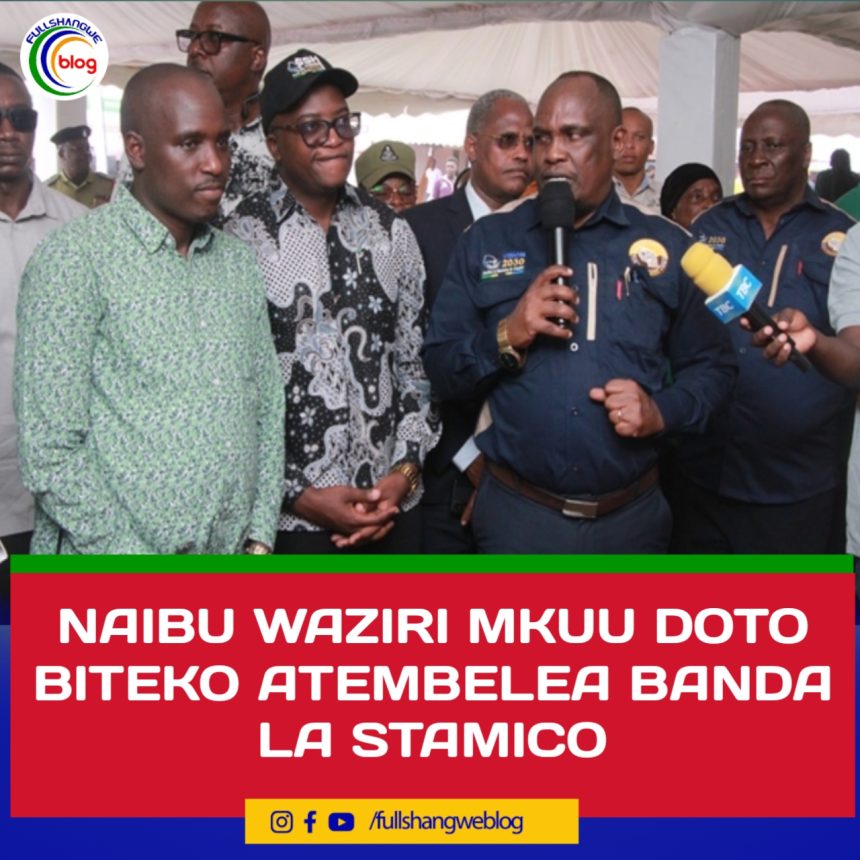 Naibu Waziri Mkuu wa Jamhuri ya Muungano wa Tanzania Dkt. Doto Biteko akiwa katika banda la STAMICO wakati alipotembelea banda hilo wa pili kutoka kulia ni Waziri wa Madini Anthony Mavunde, mwisho kulia ni Venance Mwase Mkurugenzi Mkuu wa Shirika la Madini STAMICO na kushoto ni Mkuu wa mkoa wa Geita Martine Shigella.