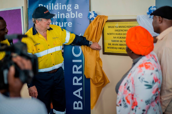 Rais na Afisa Mtendaji Mkuu (CEO) wa Kampuni ya Barrick, Mark Bristow. amekabidhi kwa uongozi wa Halmashauri ya Wilaya ya Tarime shule ya msingi mpya ya kisasa ya Kenyangi iliyojengwa na Mgodi wa Dhahabu wa North Mara.