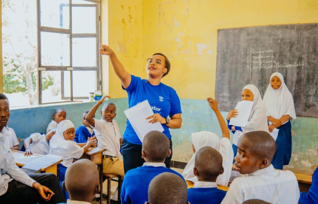 “Ms. Kai Mollel, Head of Business Incubator at Stanbic Bank Tanzania, delivers a financial literacy training session at Dodoma Makulu Primary School last week as part of the bank’s CSR contributions to the Vodacom Twende Butiama Cycling Tour 2024. In collaboration with Vodacom Tanzania, Stanbic Bank donated 100 desks and 1,000 trees to the school, supporting education and climate action initiatives.”