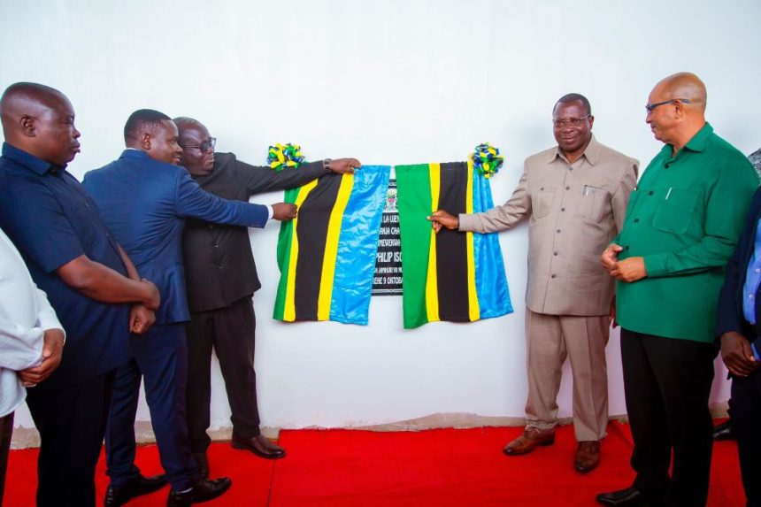 Makamu wa Rais, Dkt. Philip Mpango akivuta kitambaa kuashiria uwekaji wa jiwe la msingi la upanuzi na ukarabati wa Kiwanja cha Ndege cha Tabora Oktoba 9, 2024 mkoani Tabora.