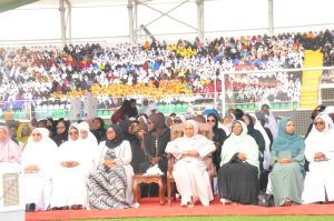 Mke wa Rais wa Zanzibar Mama Mariam Mwinyi akijumuika na waumini wa Dini ya Kiislamu katika Kongamano la Kwanza la Kimataifa lililofanyika katika Uwanja Aman Komplex Zanzibar.