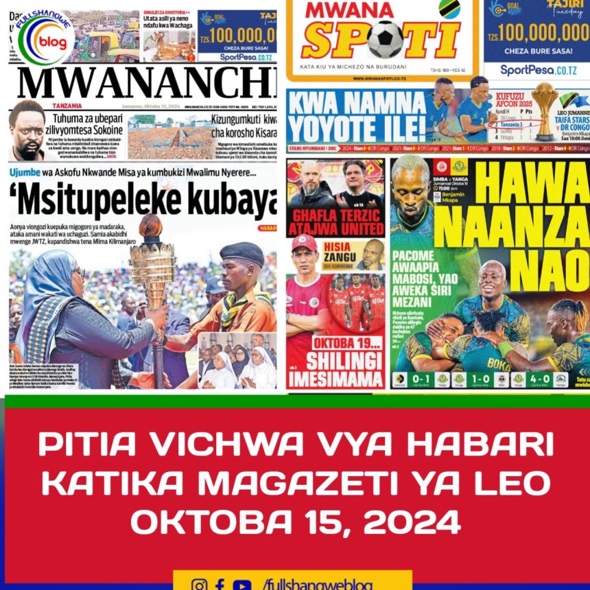 MagazetiPITIA VICHWA VYA HABARI KATIKA MAGAZETI YA LEO OKTOBA 15, 2024 Last updated: 2024/10/15 at 1:59 AM John Bukuku 2 years ago Share SHARE John Bukuku October 15, 2024 October 15, 2024 Share this Article Facebook Twitter Email Print Previous Article TÀNESCO LINDI IMETOA MSAADA KITUO CHA KULELEA WATOTO Next Article ASA KUONGEZA UZALISHAJI WA MBEGU BORA ZA KILIMO HADI KUFIKIA TANI 8,568 .