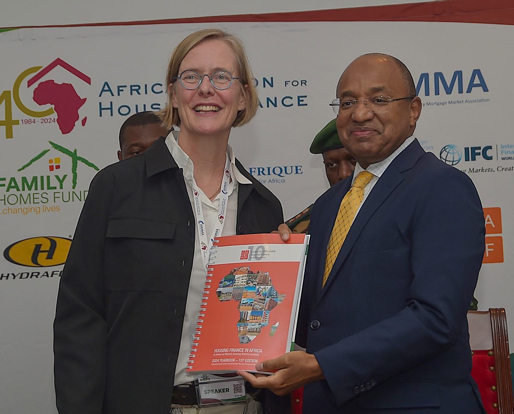 RAIS wa Zanzibar na Mwenyekiti wa Baraza la Mapinduzi Mhe.Dk.Hussein Ali Mwinyi akikabidhiwa Jarida la mwaka 2024 la “African Union Housing Finance” akikabidhiwa na Mwakilishi wa taaisi hiyo Kecia Rust, baada ya ufunguzi wa Mkutano wa Mwaka wa Pamoja kati ya Umoja wa Afrika na Jumuiya za Taasisi Zinazojishughulisha na Mikopo ya Nyumba, mkutano huo unaofanyika katika ukumbi wa Hoteli ya Melia Kiwengwa Mkoa wa Kaskazini Unguja leo 16-10-2024.(Picha na Ikulu).