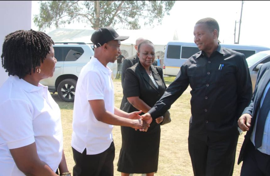 Waziri wa Elimu Sayansi na Teknolojia, Mhe. Prof. Adolf Mkenda, akisalimiana na Dkt.Domonick Chalu mwakilishi wa Mkurugenzi wa Uendeshaji na Utumishi BoT tawi la Mbeya wakati lipowasili kwenye ufunguzi wa wiki ya Huduma za Fedha Kitaifa, yenye kaulimbiu “Elimu ya Fedha, Msingi wa Maendeleo ya Kiuchumi”yanayofungua katika Viwanja vya Ruanda-Nzovwe, jijini Mbeya kushoto ni Noves Mosses Meneja Msaidizi wa Mawasilisno BoT.