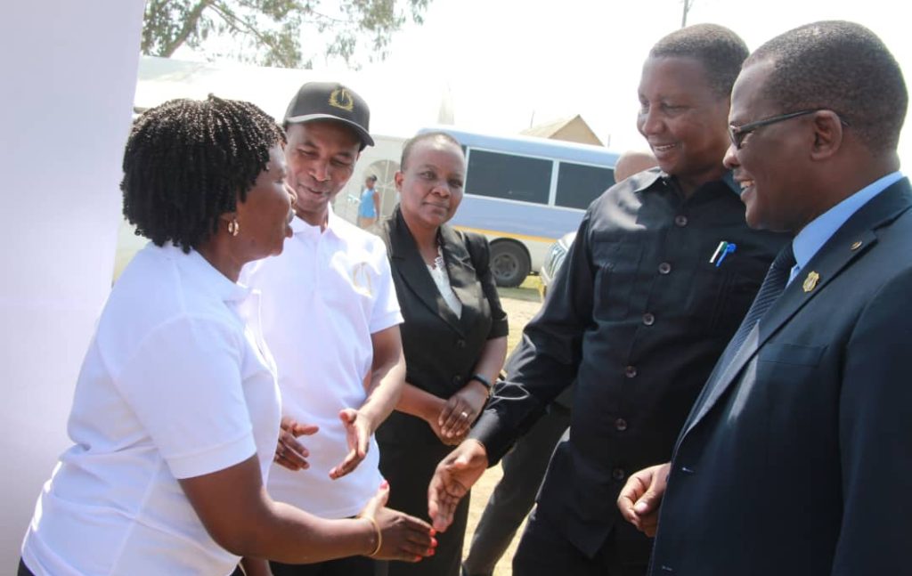 Waziri wa Elimu Sayansi na Teknolojia, Mhe. Prof. Adolf Mkenda, akisalimiana na Noves Mosses Meneja Msaidizi wa Mawasilisno BoT wakati alipowasili kwenye ufunguzi wa wiki ya Huduma za Fedha Kitaifa, yenye kaulimbiu “Elimu ya Fedha, Msingi wa Maendeleo ya Kiuchumi” katika Viwanja vya Ruanda-Nzovwe, jijini Mbeya kulia ni Kamishna wa Idara ya Uendelezaji wa Sekta ya Fedha, Dkt. Charles Mwamwaja na katikati ni Dkt.Domonick Chalu mwakilishi wa Mkurugenzi wa Uendeshaji na Utumishi BoT tawi la Mbeya.