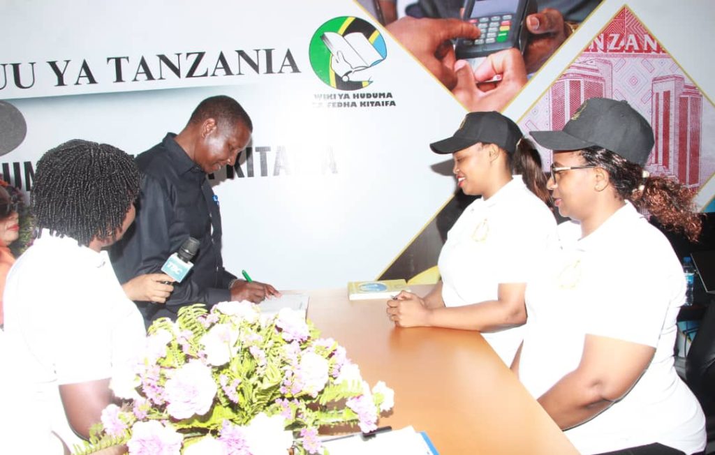 Dkt.Domonick Chalu mwakilishi wa Mkurugenzi wa Uendeshaji na Utumishi BoT tawi la MbeyaMbeya katikati, Bi. Graceana Bemeye Meneja Uendeshaji Benki Kuu tawi la Mbeya Julia na Noves Mosses Meneja msaidizi wa Mawasiliano BoT.