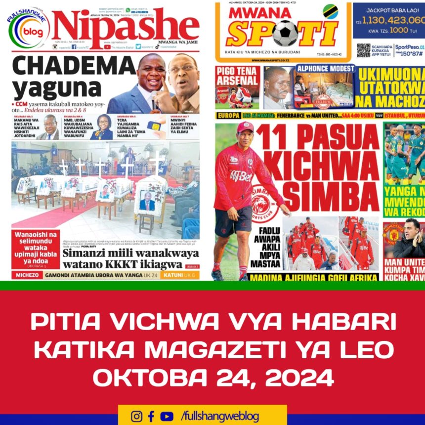 MagazetiPITIA VICHWA VYA HABARI KATIKA MAGAZETI YA LEO OKTOBA 24, 2024 Last updated: 2024/10/24 at 12:55 AM John Bukuku 1 year ago Share SHARE John Bukuku October 24, 2024 October 24, 2024 Share this Article Facebook Twitter Email Print Previous Article SERIKALI KUNADI FURSA ZA UWEKEZAJI ZILIZOPO MKOANI RUKWA – DKT. KIRUSWA Next Article MHE. PINDA AKUTANA NA VIONGOZI WA TUME HURU YA UCHAGUZI YA BOTSWANA