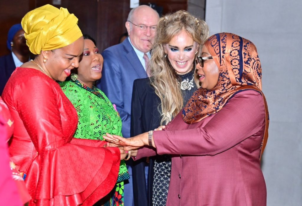 Rais wa Jamhuri ya Muungano wa Tanzania Mhe. Dkt. Samia Suluhu Hassan akisalimiana na Wenza wa Wakuu wa nchi mbalimbali Barani Afrika mara baada ya ufunguzi wa Mkutano wa 11 wa Merck Foundation Africa Asia Luminary uliofanyika katika hoteli ya Johari Rotana Jijini Dar es Salaam tarehe 29 Oktoba, 2024.