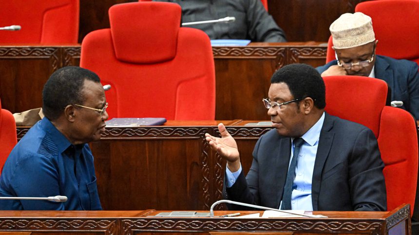 Waziri Mkuu Kassim Majaliwa akizungumza Naibu Waziri Ofisi ya Makamu wa Rais – Muungano na Mazingira Khamis Hamza Khamis, wakati wa kikao cha Nne cha Mkutano wa Kumi na Saba wa Bunge, Bungeni jijini Dodoma Novemba 01, 2024 (Picha na Ofisi ya Waziri Mkuu).
