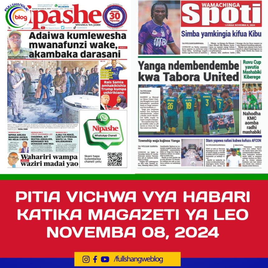 MagazetiPITIA VICHWA VYA HABARI KATIKA MAGAZETI YA LEO NOVEMBA 08, 2024 Last updated: 2024/11/07 at 11:44 PM John Bukuku 1 year ago Share SHARE John Bukuku November 7, 2024 November 7, 2024 Share this Article Facebook Twitter Email Print Previous Article MAAFISA RASILIMALI WATU WA SEKTA YA UMMA NA BINAFSI BARANI AFRIKA WAZINGATIE SWALA LA UTAWALA BORA Next Article JK KATIKA VIKAO VYA TAASISI YA MASUALA YA ELIMU DUNIANI (GPE) JIJINI TORONTO, CANADA